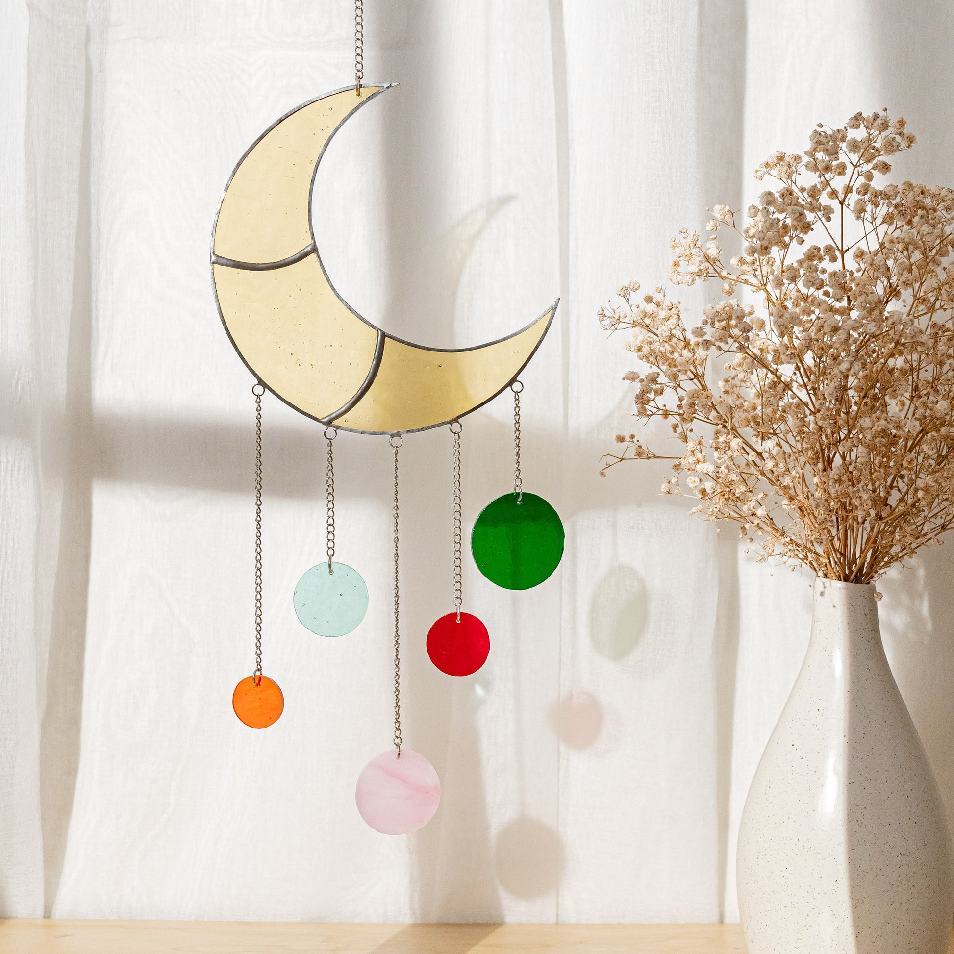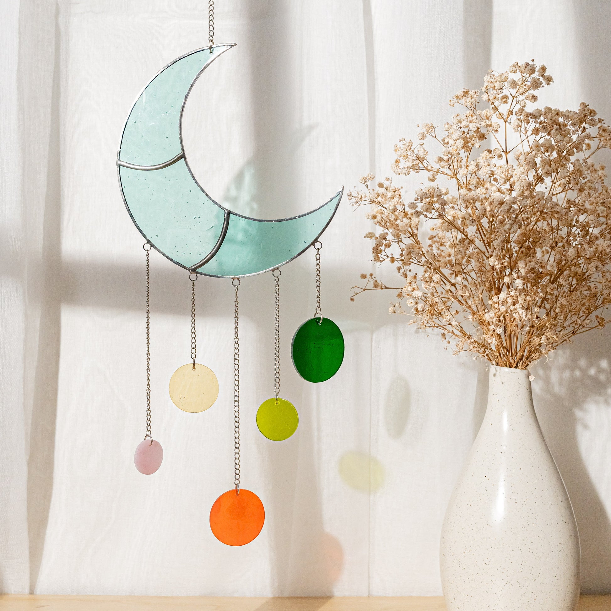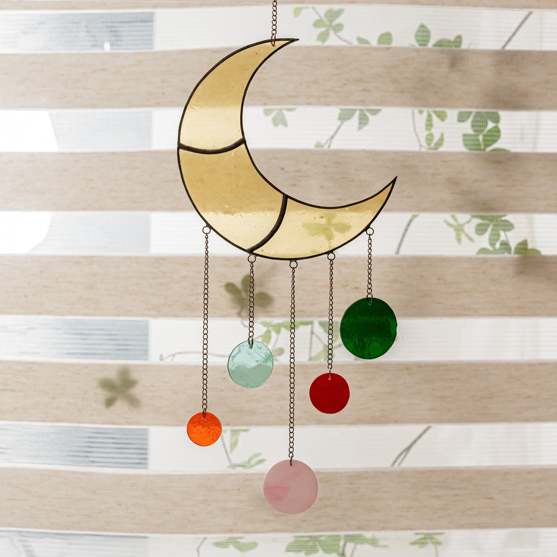 Moon Phase Stained Glass Wind Chimes Suncatcher for Chic Home Accents