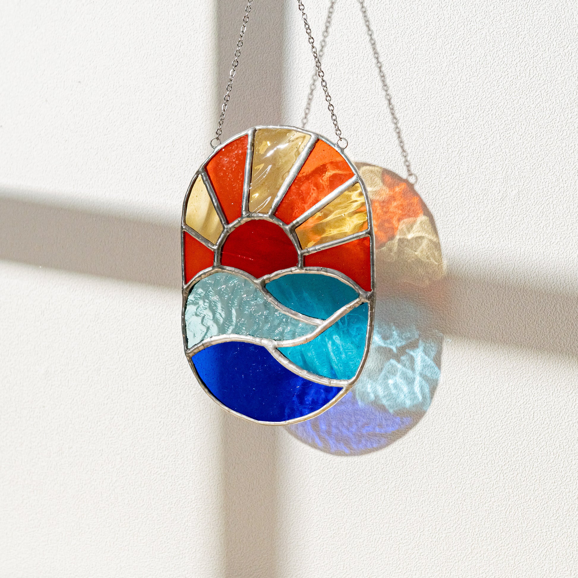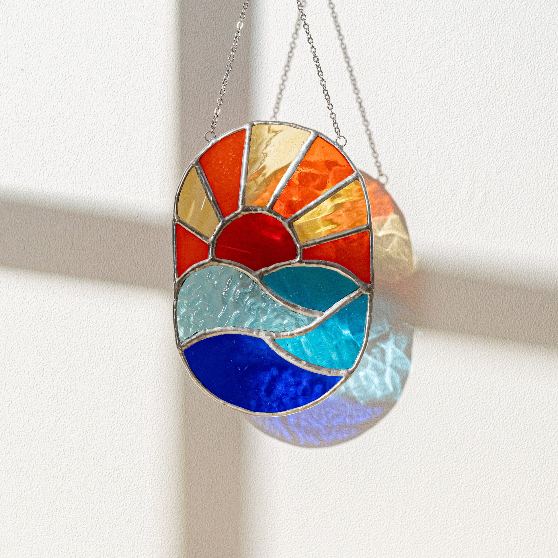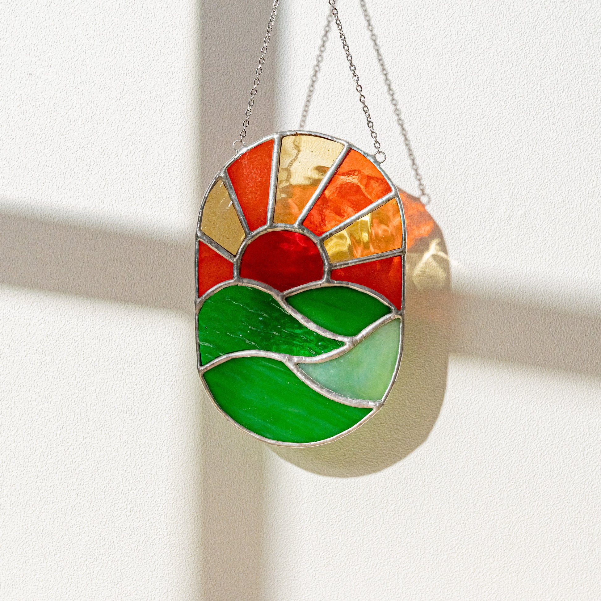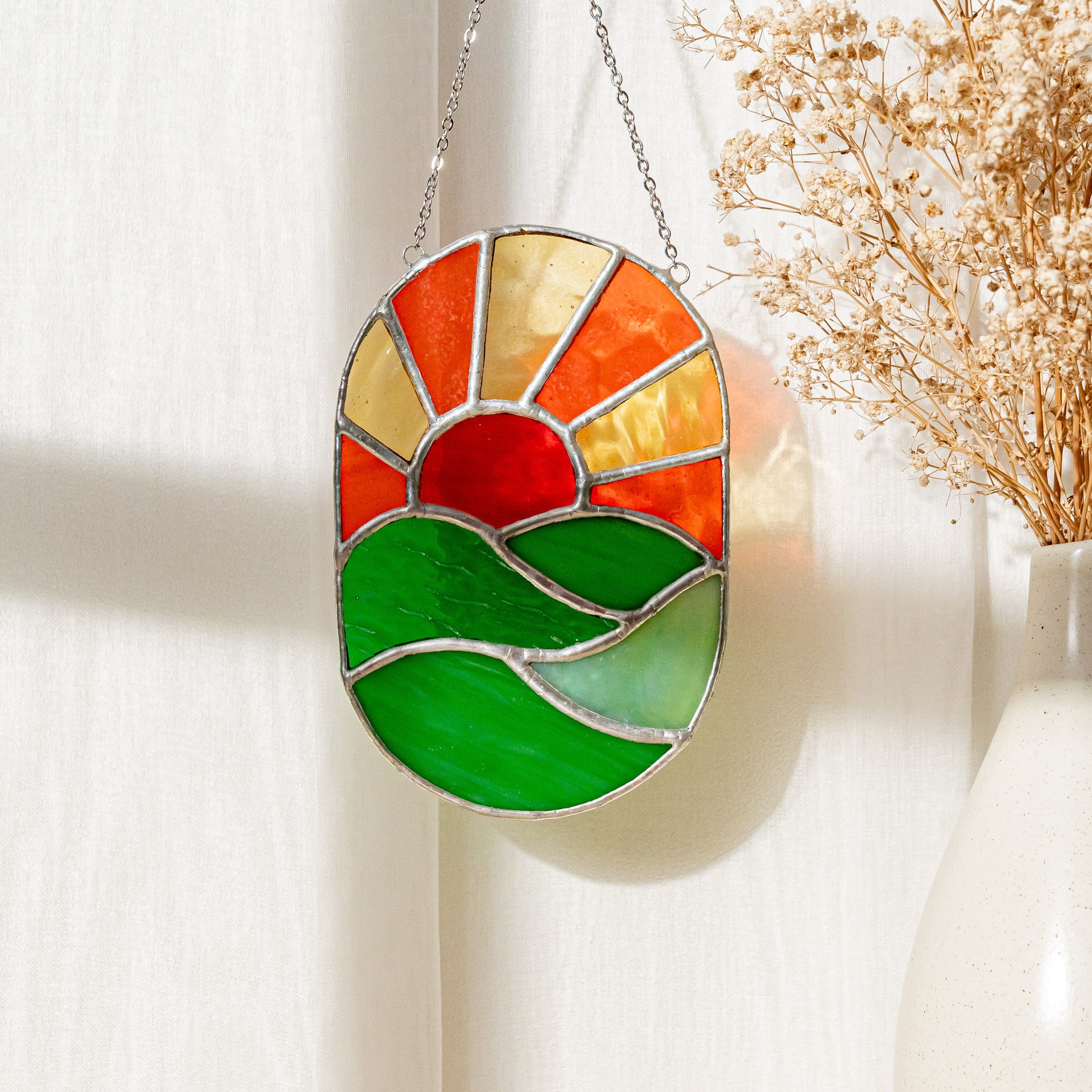 Stained Glass Sun Suncatcher For Bright Boho Wall Decor Accent