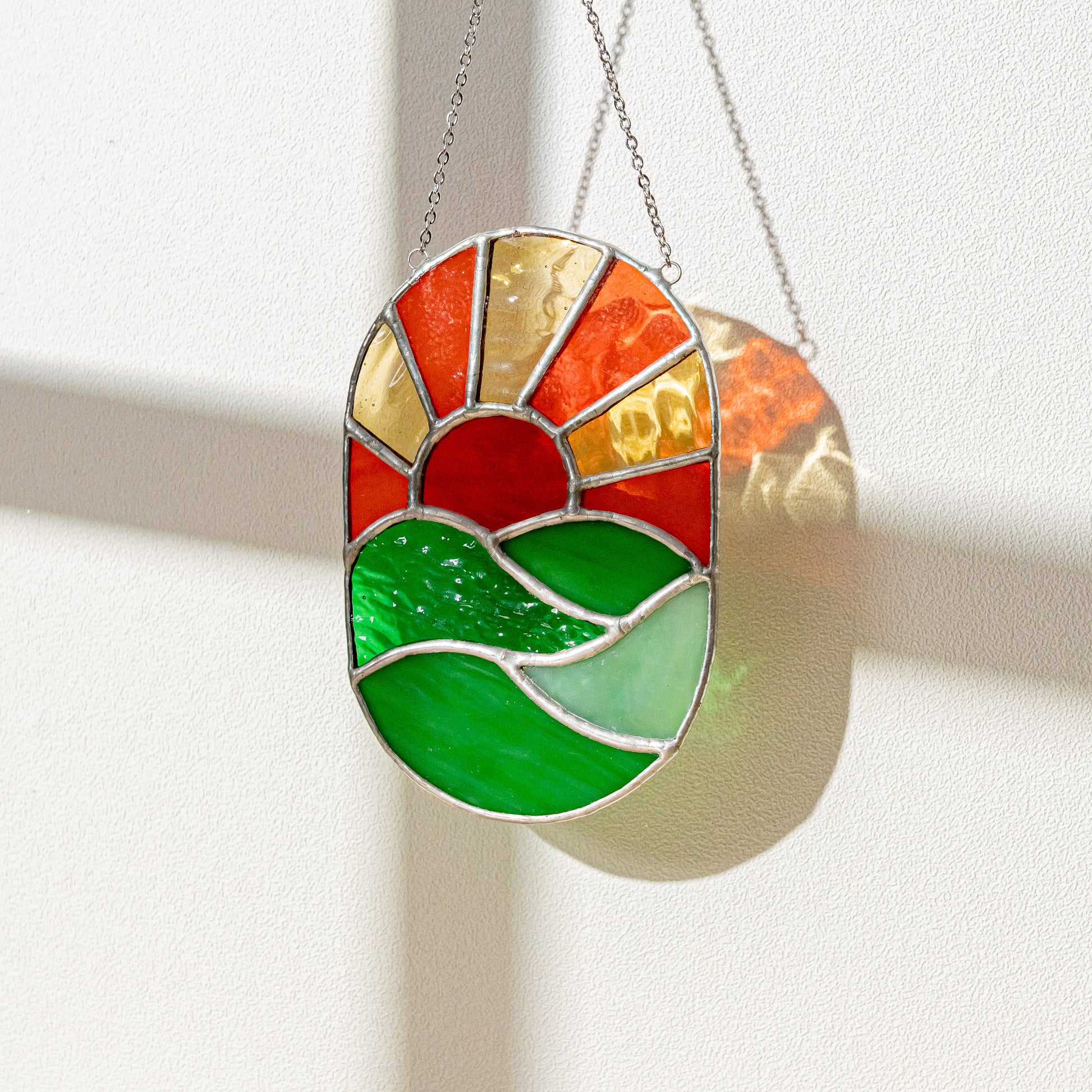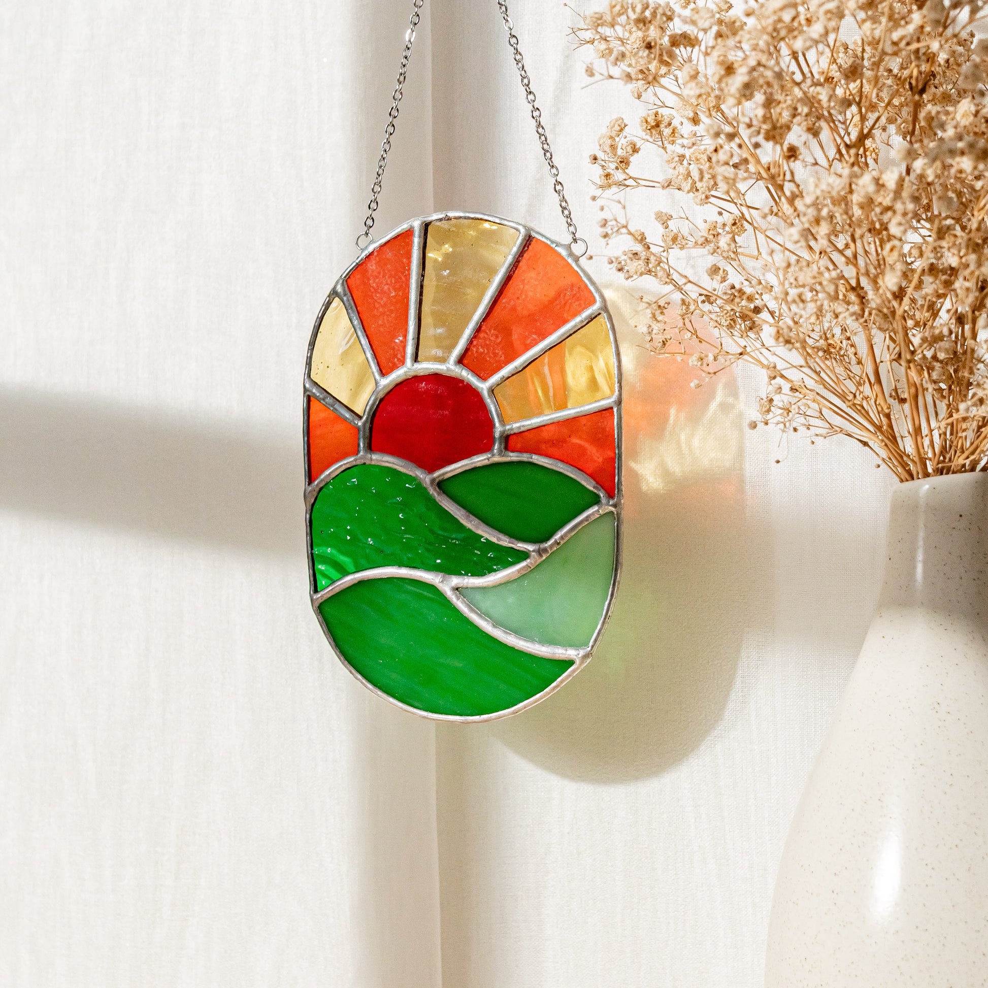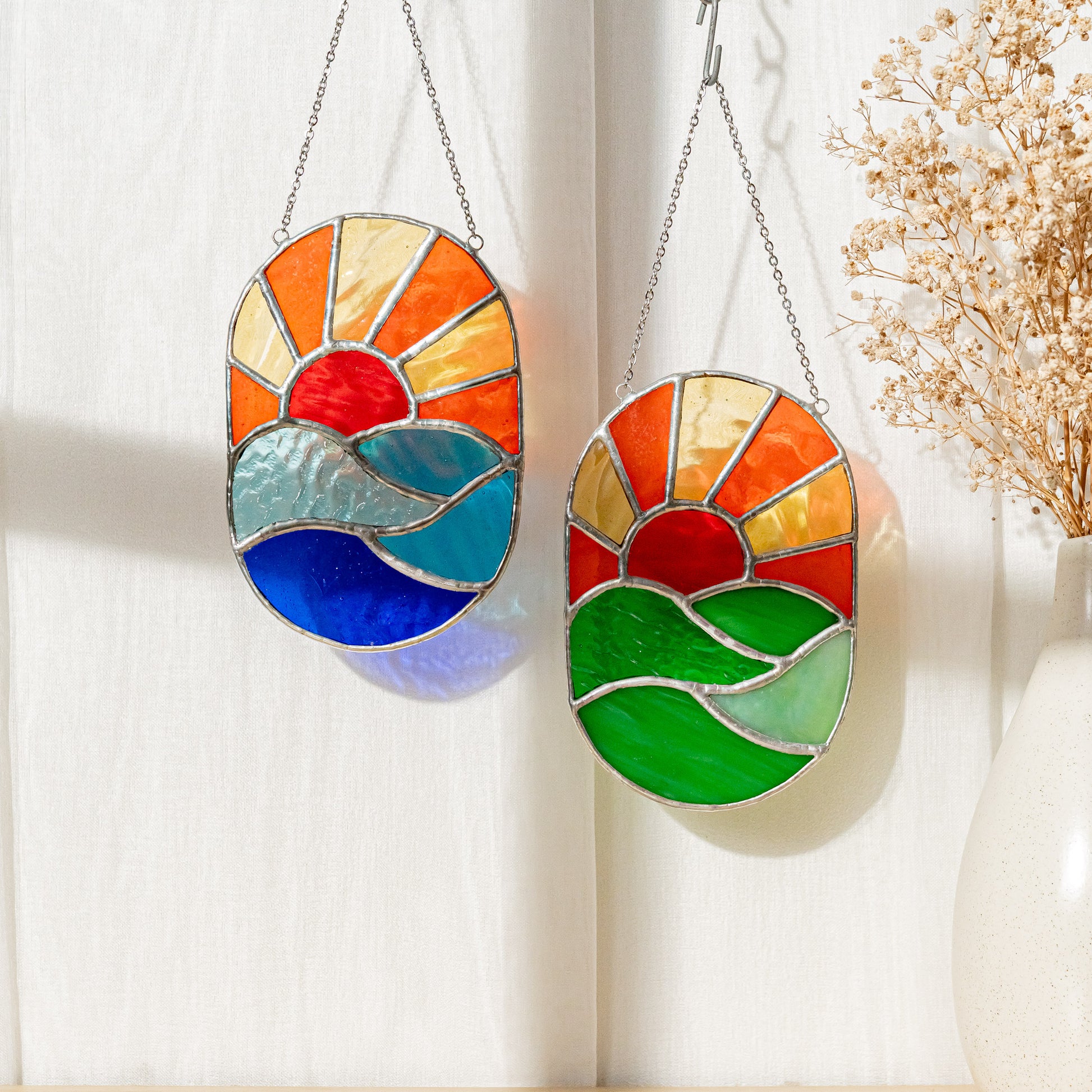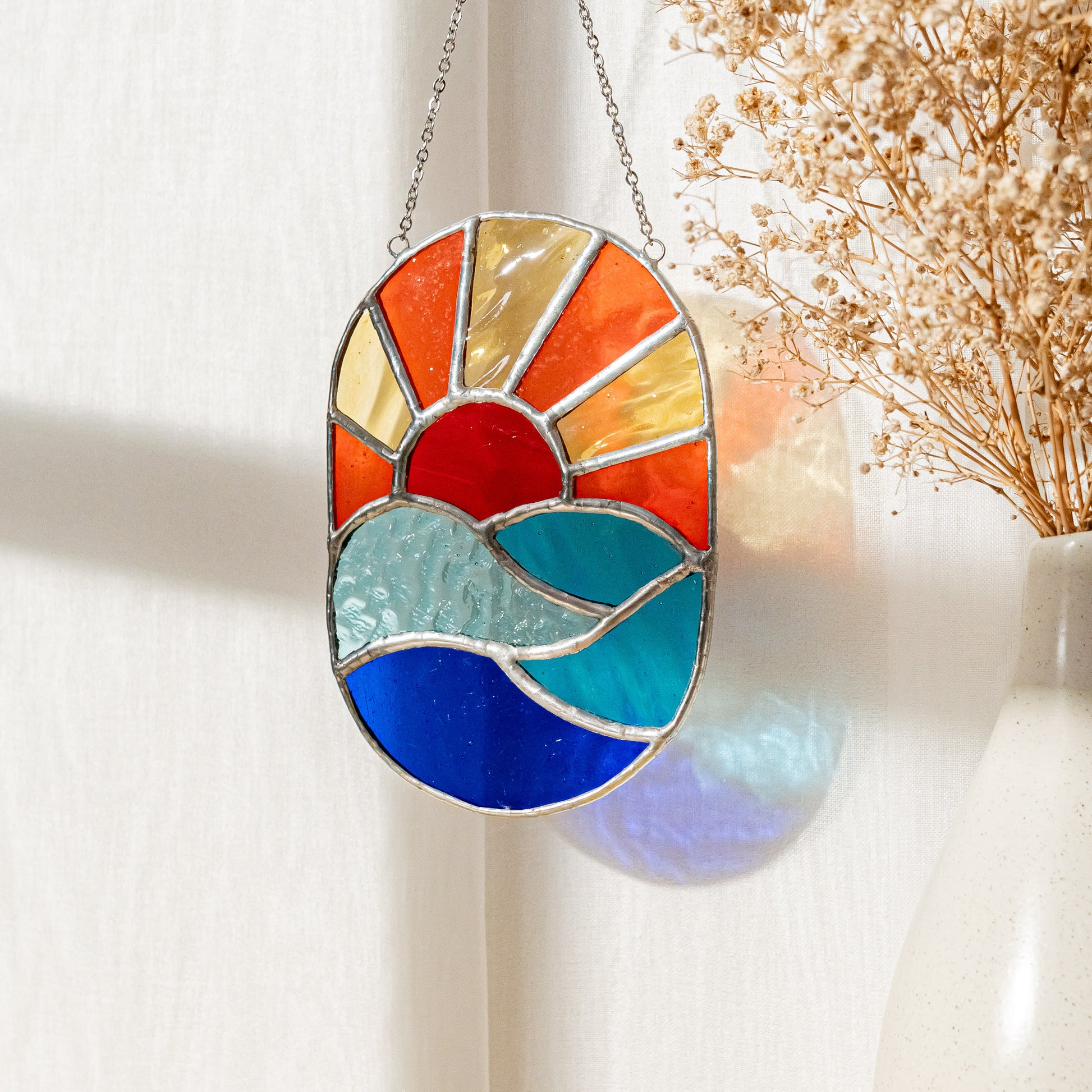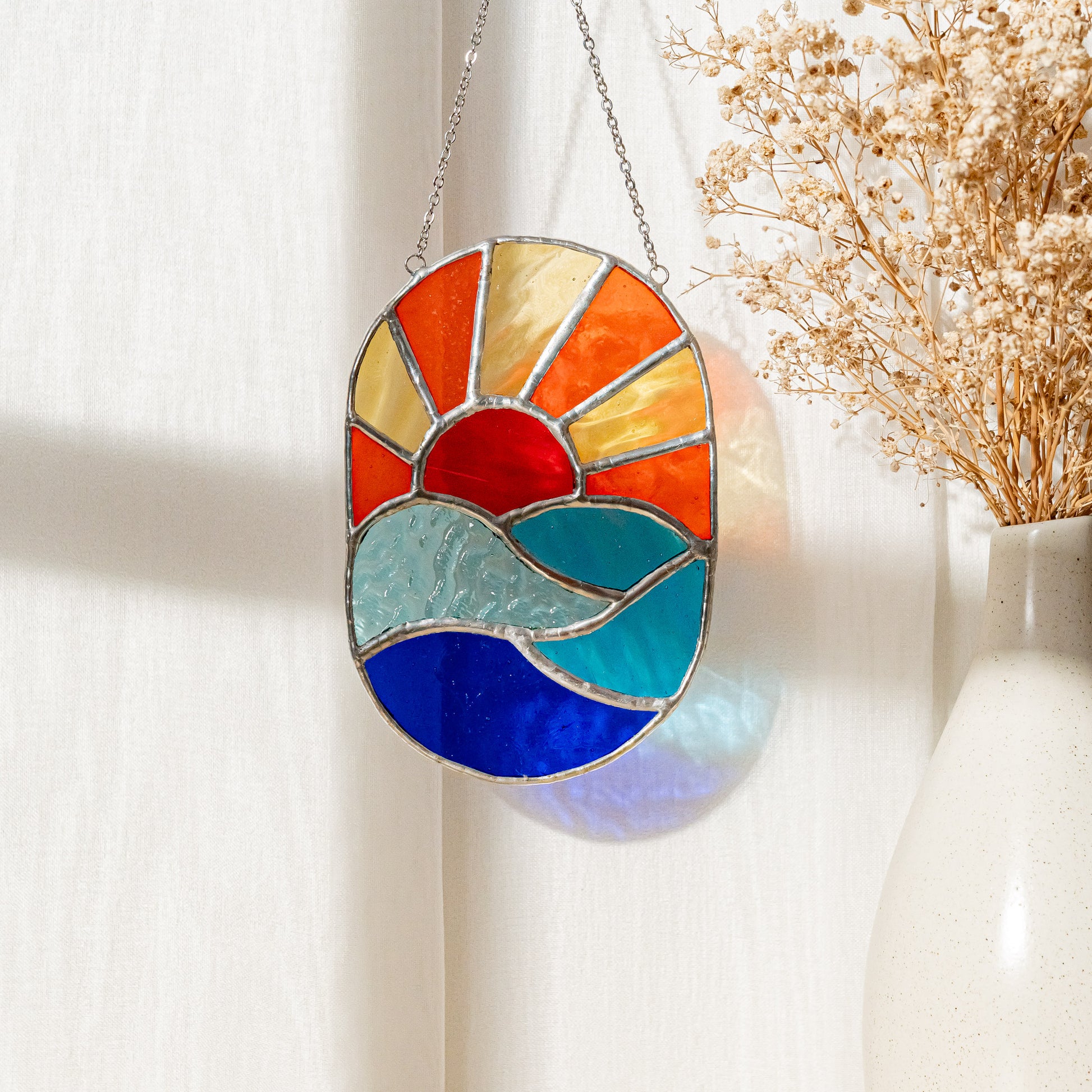Stained Glass Sun Suncatcher For Bright Boho Wall Decor Accent