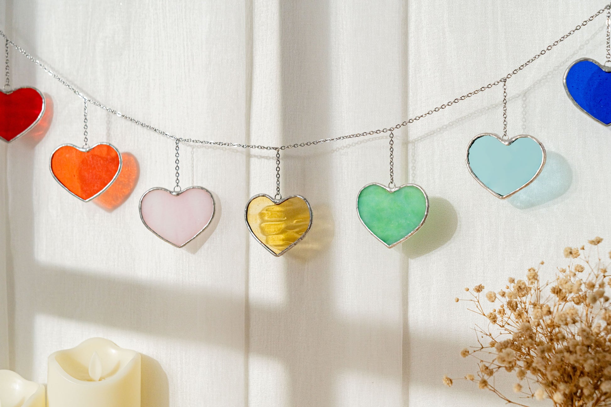 These Stained Glass Valentine Heart Garland are 100% handcrafted with Glass.