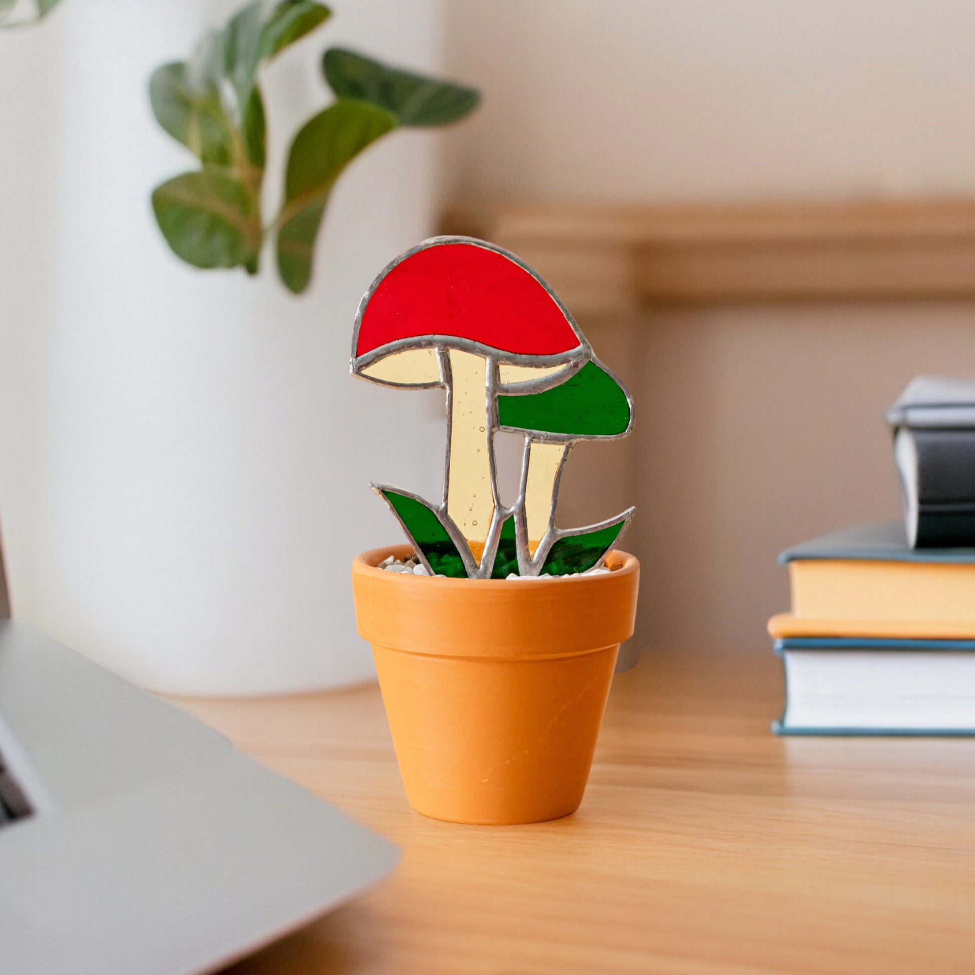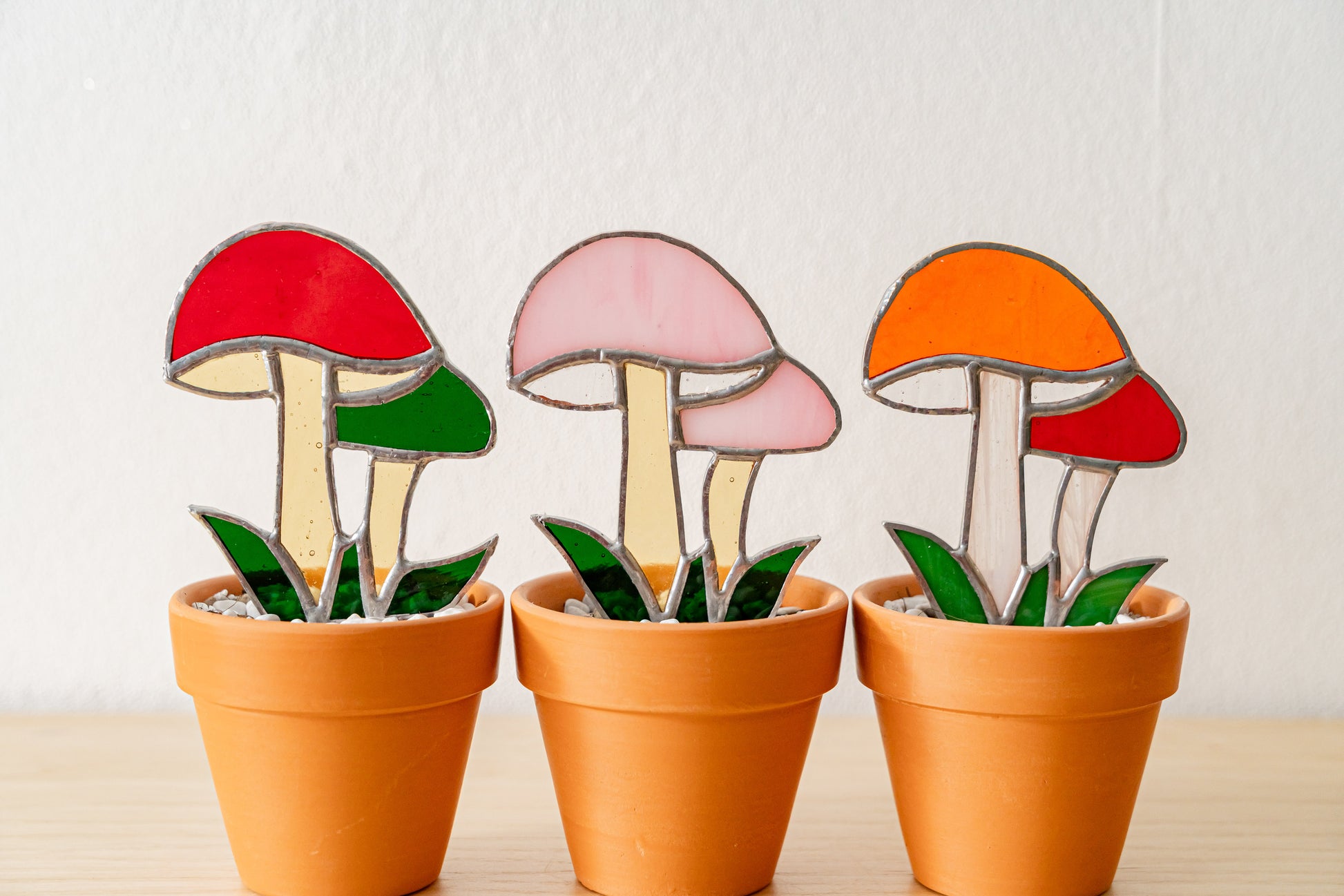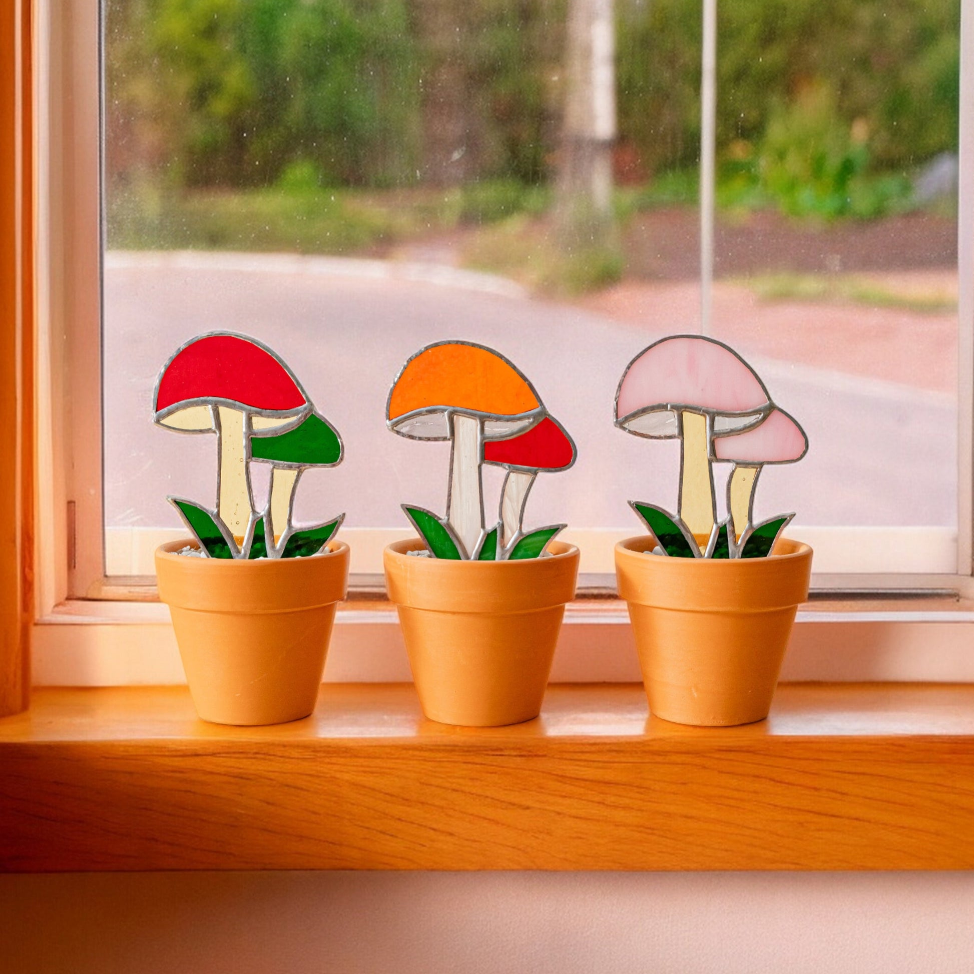Stained Glass Window Mushroom Suncatcher for Home and Garden Decor